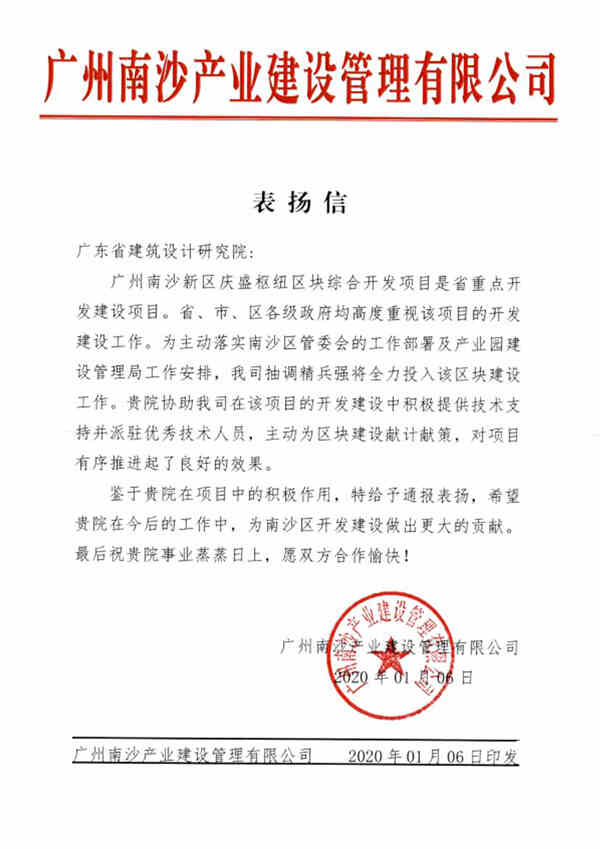南沙分院扎根南沙新區(qū),深耕粵港澳大灣區(qū)最前沿,發(fā)揮窗口輻射作品,始終專注原創(chuàng),在2019年建筑創(chuàng)作效益初步顯現(xiàn)。在“慶盛樞紐區(qū)塊綜合開發(fā)項(xiàng)目”中,南沙分院積極為業(yè)主提供技術(shù)支持并派駐優(yōu)秀技術(shù)人員,為區(qū)塊的建筑策劃和建設(shè)獻(xiàn)計(jì)獻(xiàn)策,對項(xiàng)目的有序推進(jìn)發(fā)揮了重要作用,獲得業(yè)主書面表揚(yáng)。