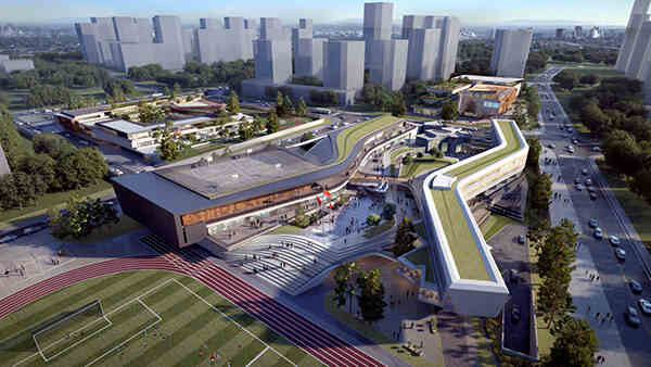 廣州愛莎國際學校暨愛莎國際教育集團總部位于廣州市黃埔區(qū)聯(lián)和街道科學城,總用地面積37320㎡,總建筑面積80000㎡,地形高差30米。根據(jù)地塊的不規(guī)則形狀,設計提出“共享·綠色·交流”的全新國際學校設計理念,將各功能區(qū)有序展開布置,讓不同標高的地臺形成震撼尺度的交流空間,建筑物與周圍環(huán)境協(xié)調共生。