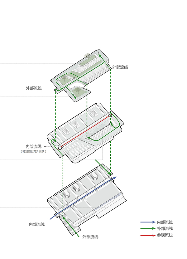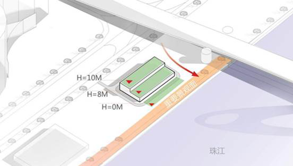 面對珠江兩岸的景觀要求,我們對建筑體量進行了調整,臨江部分稍微低一些,形成一個對公眾開放的二樓觀景平臺。希望這個平臺能夠真正對公眾開放,這是我們探索的關鍵點。