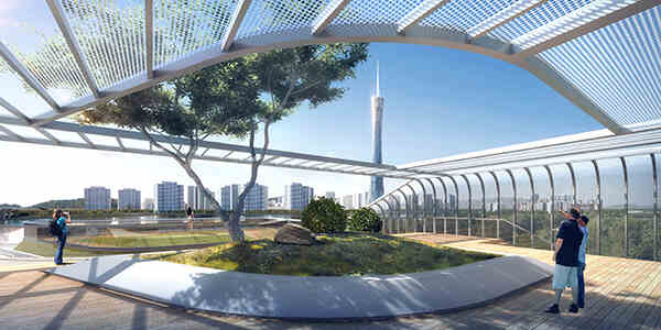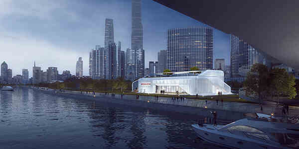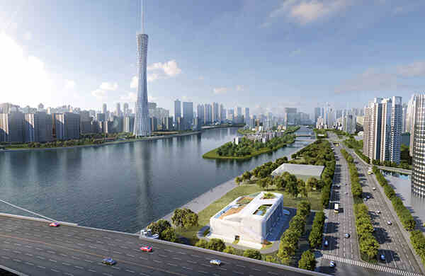設(shè)計(jì)團(tuán)隊(duì)秉承 “提高城市設(shè)計(jì)水平,增強(qiáng)公共參與城市建設(shè)新路徑”的設(shè)計(jì)理念,在充分考慮社會性景觀訴求因素的前提下,結(jié)合傳統(tǒng)美學(xué),以層層退臺的建筑形式面朝珠江,結(jié)合城市景觀特色形成北高南低的建筑姿態(tài),增強(qiáng)建筑物立體感,使建筑物融入周圍景觀呼應(yīng)珠江景色。