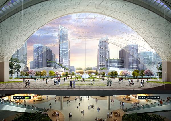 交通層面:以“陽光樞紐大廳、立體多層換乘”為理念,打造30米明亮通高的陽光大廳,交通設(shè)施一廳管控,實現(xiàn)距離最短、效率最高、識別最強的舒適換乘體驗。