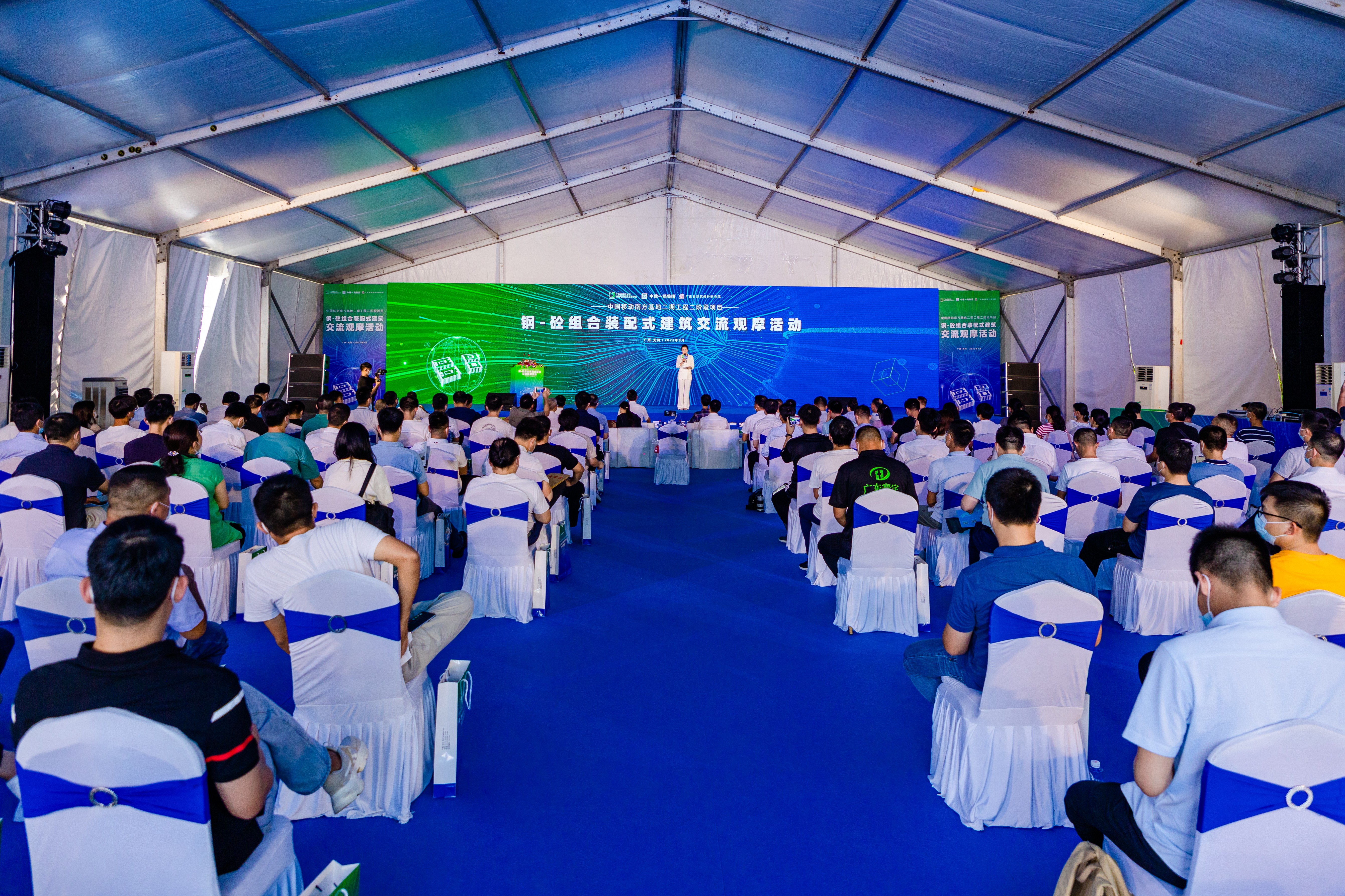 觀摩交流會依托公司設計的中國移動南方基地二期二階段項目舉行,現(xiàn)場通過視頻播放、經(jīng)驗分享、專項講解、現(xiàn)場觀摩等形式,展現(xiàn)中國移動南方基地裝配式建筑項目參建方在推廣鋼—混凝土組合裝配式建筑、綠色建造、施工現(xiàn)場智能化管理等方面做出的探索和成效。該項目以建成高標準的IT支撐中心及粵港澳大灣區(qū)創(chuàng)新研究院為目標,是廣東移動緊隨國家粵港澳大灣區(qū)戰(zhàn)略,積極布局5G新基建的重要舉措。項目采用公司自主研發(fā)的“鋼-混凝土組合裝配式建筑體系”進行建造,力爭達到AA級裝配式建筑。