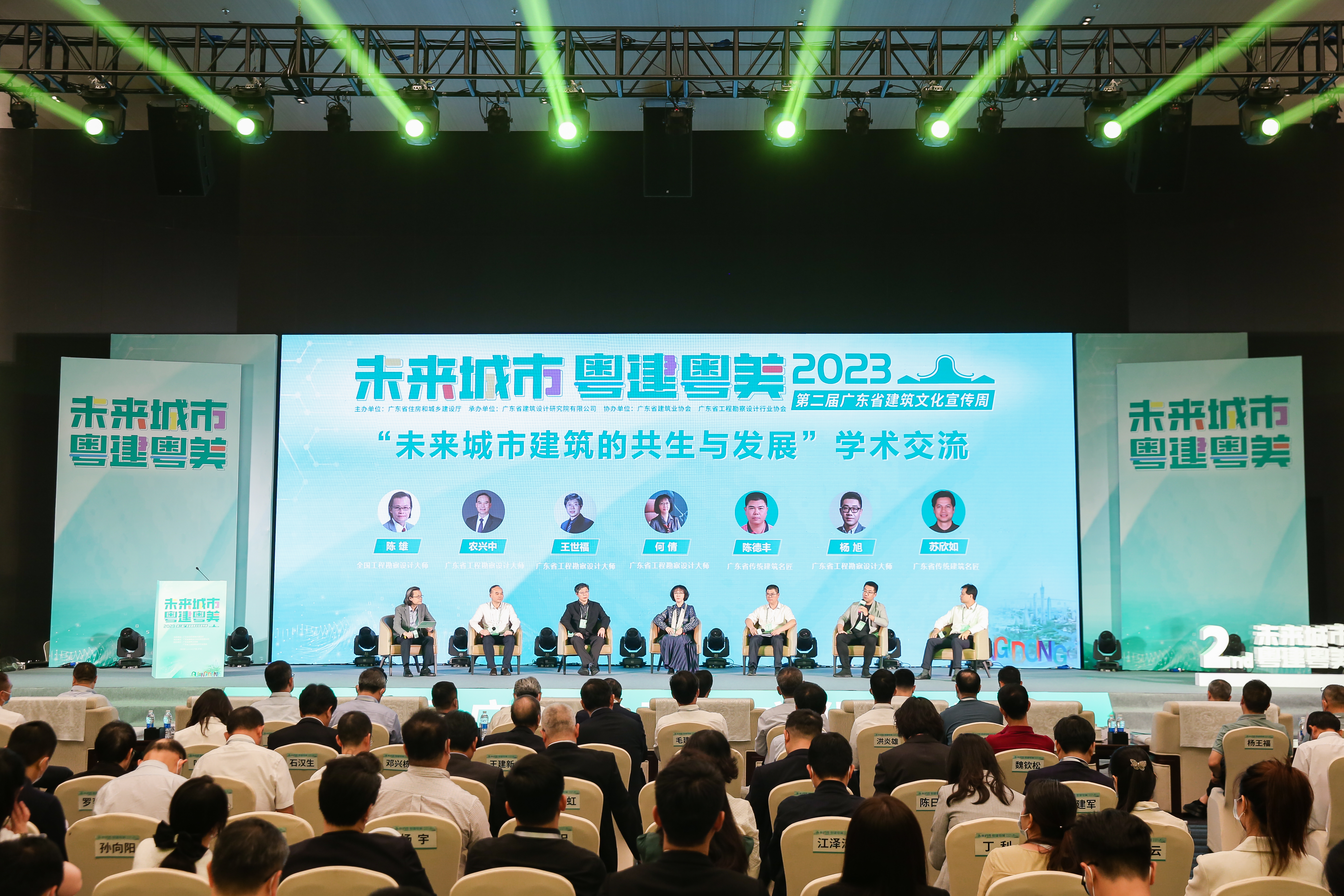陳雄主持學(xué)術(shù)交流環(huán)節(jié),并與勘察設(shè)計(jì)大師、傳統(tǒng)建筑名匠代表以及現(xiàn)場來賓暢談“未來城市建筑的共生與發(fā)展”,聚焦綠色低碳、高效智慧、嶺南人文、宜居城市、健康韌性等方面,深入探討未來城市建設(shè)的新模式、以建筑業(yè)高質(zhì)量發(fā)展推進(jìn)城市現(xiàn)代化建設(shè)的策略等等。在場嘉賓積極互動(dòng),圍繞實(shí)施城市更新涉及的安全、管理等因素,以及與民生緊密相關(guān)的熱點(diǎn)話題進(jìn)行深度交流,問答往來間將活動(dòng)推向新高潮。
