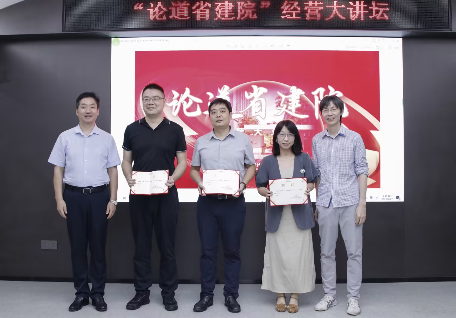 會前,李巍與李鵬共同為三位講師頒發(fā)“論道省建院”講師聘書。