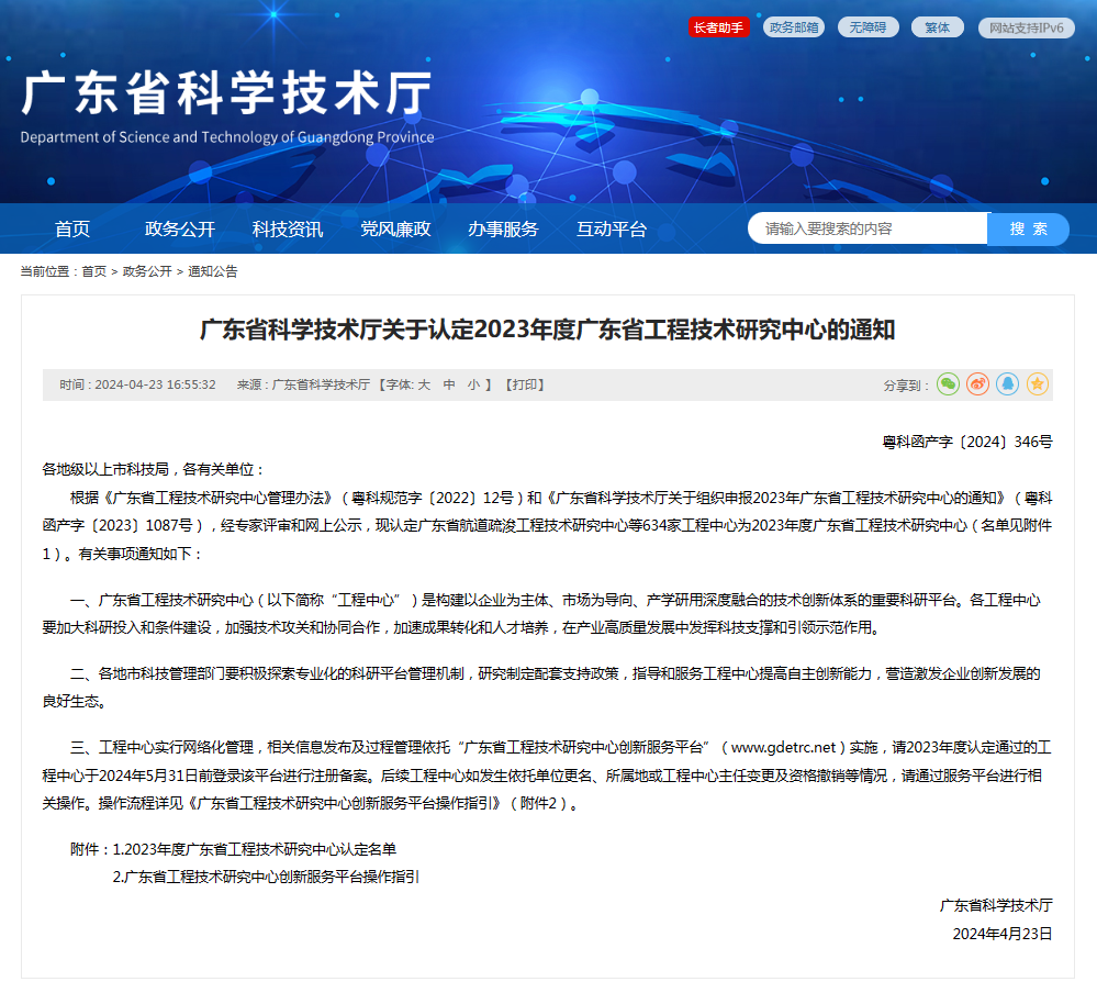 4月23日,廣東省科學(xué)技術(shù)廳正式公布了“2023年度廣東省工程技術(shù)研究中心認定名單”。公司申報的“廣東省大型公共建筑綠色低碳技術(shù)工程技術(shù)研究中心”(以下簡稱“大型公共建筑綠色低碳技術(shù)中心”)正式被認定為2023年度廣東省工程技術(shù)研究中心(以下簡稱“工程中心”)。