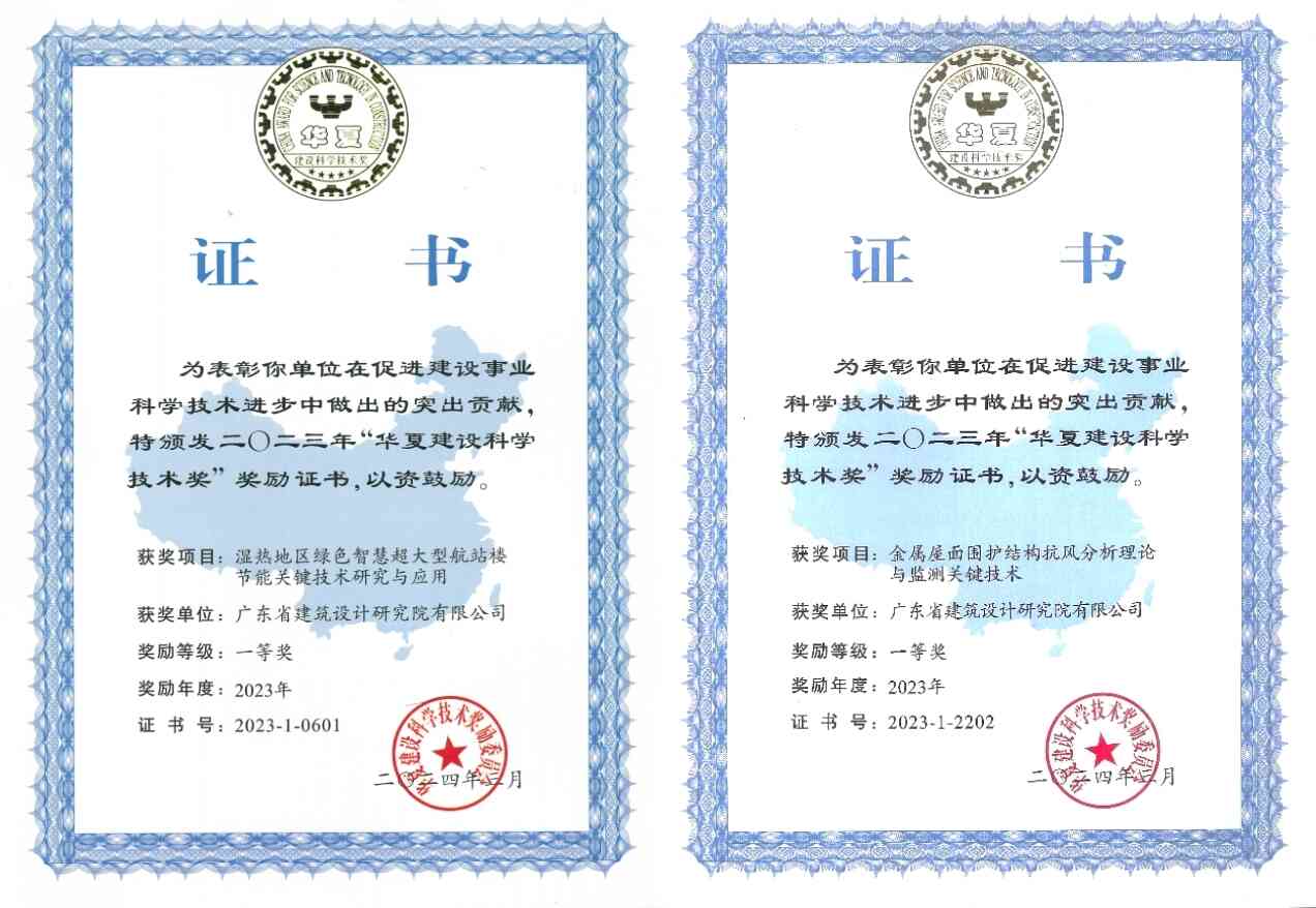 科研成果《濕熱地區(qū)綠色智慧超大型航站樓節(jié)能關(guān)鍵技術(shù)研究與應(yīng)用》為民航業(yè)落實(shí)“四型機(jī)場”發(fā)展、推進(jìn)綠色機(jī)場建設(shè)做出突出貢獻(xiàn),《金屬屋面圍護(hù)結(jié)構(gòu)抗風(fēng)分析理論與監(jiān)測關(guān)鍵技術(shù)》提出的金屬圍護(hù)結(jié)構(gòu)抗風(fēng)減災(zāi)分析理論及解決痛點(diǎn)的關(guān)鍵技術(shù),應(yīng)用于汕頭亞青場館等項目,促進(jìn)了行業(yè)技術(shù)進(jìn)步、取得了顯著的社會經(jīng)濟(jì)效益,均獲2023年度華夏建設(shè)科學(xué)技術(shù)獎一等獎。