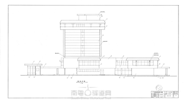 廣東迎賓館3號樓(白云樓)建筑的南向立面圖,廣東省建筑設(shè)計研究院提供。