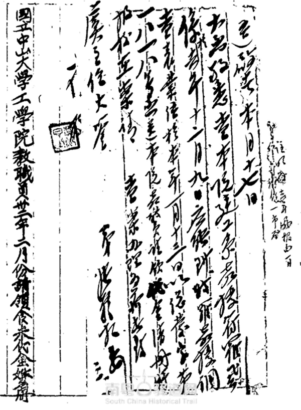 著名畫家符羅飛到任中山大學(xué)的時間為1942年12月,因工學(xué)院漏報,需重新出具證明,從1月份起每月補(bǔ)十市斗。