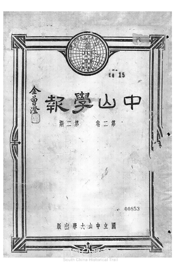 第二卷第2期《中山學(xué)報》封面,藏于廣東省檔案館。