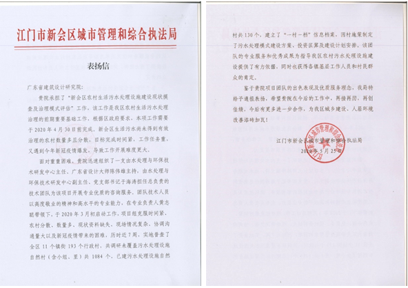 由于當?shù)靥峁┑馁Y料長期未更新,現(xiàn)狀資料缺失比較嚴重,調研戰(zhàn)線被迫拉長,留給編制報告的時間越發(fā)緊張。為減少通勤時間,項目組決定“集體駐場”,但由于受疫情影響,新會區(qū)營業(yè)的酒店屈指可數(shù),且對外來人員入住非常敏感,常住廣州的湖北籍黨員賽金妮被懷疑來自重點疫區(qū),酒店拒絕其入住,她表示理解,也沒有氣餒,積極與業(yè)主、酒店進行溝通,最終項目組全體成員成功辦理入住手續(xù)。解決小插曲的經(jīng)歷,激發(fā)了項目組克服更大“攔路虎”的勇氣,特別是先鋒崗黨員無懼困難,不怕挑戰(zhàn),帶動項目組其他成員每天起早貪黑、苦干實干,他們一邊將照片、CAD方案圖、工程量匯總表等資料分門別類,整理出豐富詳實的調研成果,一邊優(yōu)化分工,同步編制調研報告、方案可行性研究報告。遇到技術難點及時向陳偉雄大師請教,并利用就餐時間進行技術交流,研究解決問題的思路,大家笑稱,有工作“加餐”,味道更贊。在爭分奪秒的鏖戰(zhàn)中,項目組在調研后兩周內完成全部報告,創(chuàng)新性的建立了一村一檔信息庫,因村施策選擇治理模式并制定實施方案,不僅極大提高了實施工程量及投資估算的精準性,也為后續(xù)污水處理項目的實施奠定了堅實基礎,同時對全省各地開展同類工作也具有較好的借鑒意義。如此高效優(yōu)質的服務讓業(yè)主驚嘆不已,江門市城管局特地發(fā)來《表揚信》,稱贊項目組“展現(xiàn)了高度敬業(yè)精神和高水平的專業(yè)能力”。