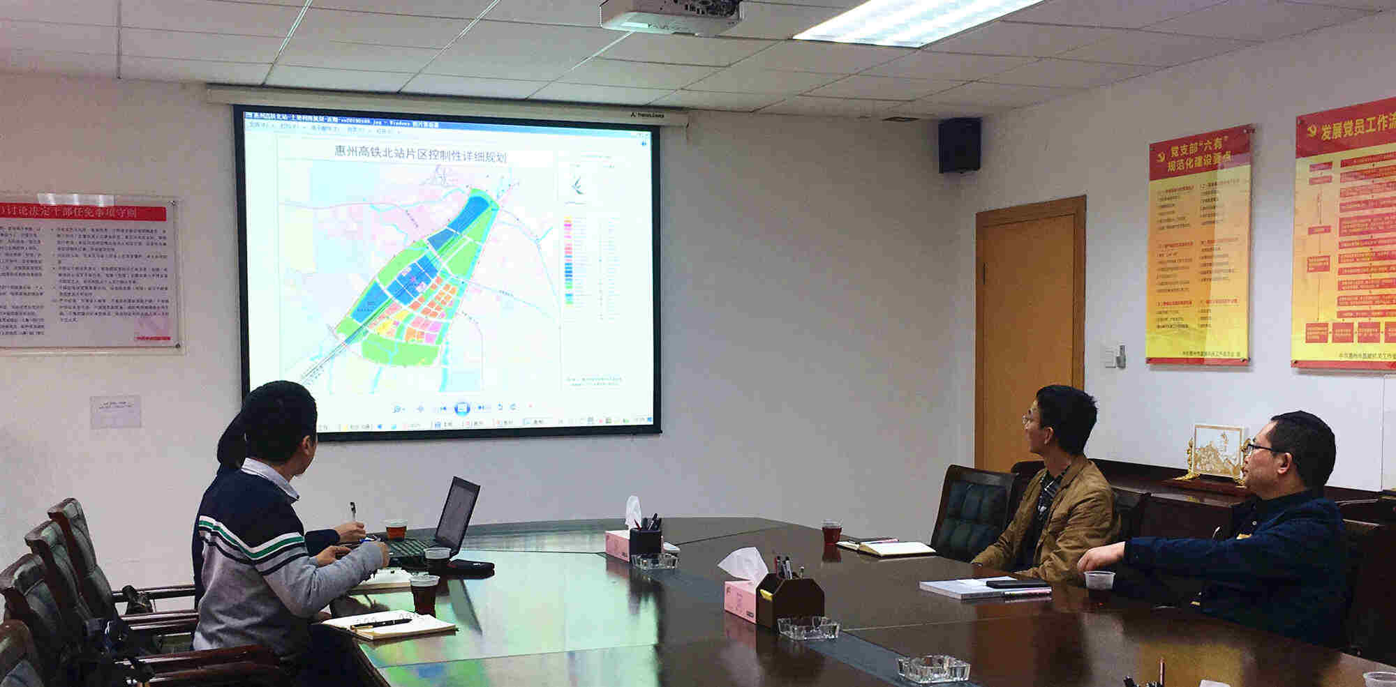 此次規(guī)劃編制是城規(guī)所踐行我公司“走出去”發(fā)展戰(zhàn)略的重要項目,不容有失。由于惠州高鐵北站預計2021年投入使用,考慮后期建筑設(shè)計及施工方案等用時,預留給規(guī)劃編制周期格外緊張,僅有1年時間完成編制報批。同時,因為規(guī)劃涉及交通、市政、城市設(shè)計等不同專項研究,不同專業(yè)的工作重點、內(nèi)容與深度要求不一,協(xié)調(diào)推進難度比較大。從接到任務開始,支委彭健明同志就像“陀螺”一樣,想停都停不下來,作為項目負責人,他身兼數(shù)職,向當?shù)卣块T匯報方案、組織召開協(xié)調(diào)例會、跟進對接項目情況,匆匆的身影、飛快的語速、疲勞的眼神,是留給項目組成員最深刻的印象。